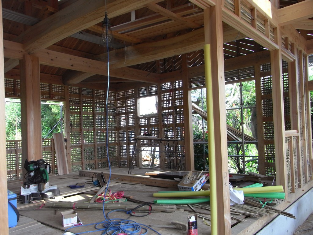 屋久島在住の施主からメールを初めていただいたのは2008年の春だった。屋久島の雨が多くて暖かい、シロアリが多い気候風土には、床下換気もできて、暖房もできる「そよ風」がいい。そして木と土壁で家を作りたい、という熱心な施主はホームページを見て、福岡の事務所まで来てくれた。
